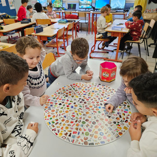 En parrainage, les MS/GS et les CM1 ont préparé les bricolages du marché de Noël. Ils ont également partagé un temps de lecture d'histoires et de jeux de société.